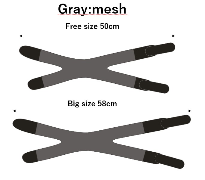 フリーサイズの全長の長さを51cmから50cmに、Bigサイズの全長の長さを54cmから58cmに、それとメッシュ部分がグレーになりました。