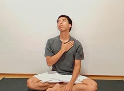 ・右の掌を左の鎖骨下(胸)を軽く押さえる
