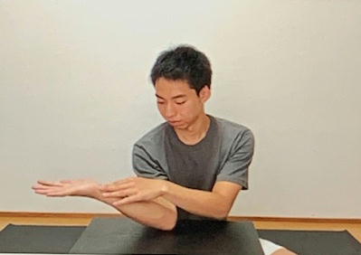 ・それから両手を前の方に置く