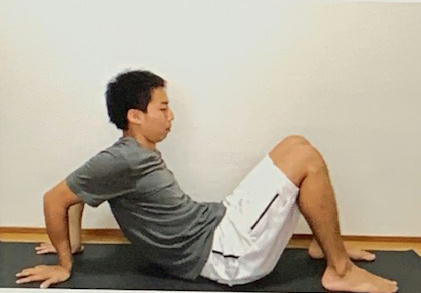 ・体育座りで、後ろへ手を着く(指先は後方)