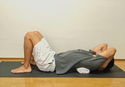 ・タオルの上に肩甲骨が当たるように仰向けで寝る